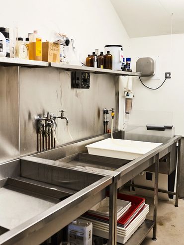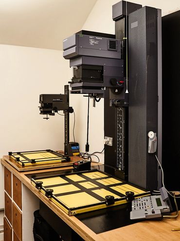 The dark room showcases 2 Durst enlargers for 35mm up to 4 x 5. Printing up to 20 x 24 inch and process small, medium and large format B&W film.